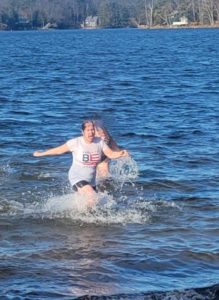 At my age, new can be scary. It can cause one to falter and balk. Inertia takes hold as monotony sets in. Not for me! I started 2024 with my first polar plunge. With my husband and friends by my side and wearing a t-shirt with the word BE the most visible, the dunk was quick, but the invigorating aura will stay with me for a long time. That’s what I call a fortuitous omen for the year to come.