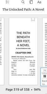 Through the magic of e-books, I’ve added the opening of Chapter One as Bonus Content to the end of THE UNLOCKED PATH in the Kindle version. If you already have it in your KINDLE library and have put your SETTINGS to Update Automatically, it appears after THE END. For help on checking your settings, this article is helpful.